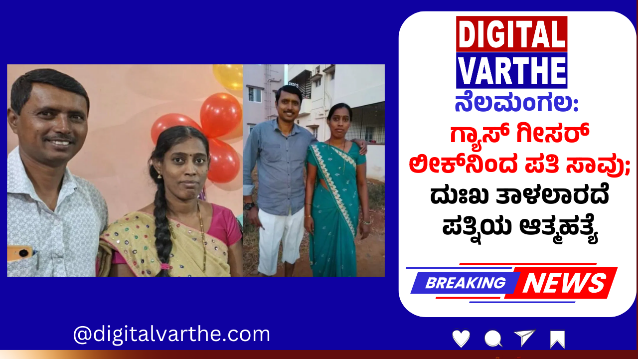 ನೆಲಮಂಗಲ:ಗ್ಯಾಸ್ ಗೀಸರ್ ಲೀಕ್ನಿಂದ ಪತಿ ಸಾವು; ದುಃಖ ತಾಳಲಾರದೆ ಪತ್ನಿಯ ಆತ್ಮಹತ್ಯೆ